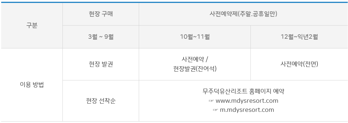 - 온라인 예약 : 무주덕유산리조트 공식 홈페이지