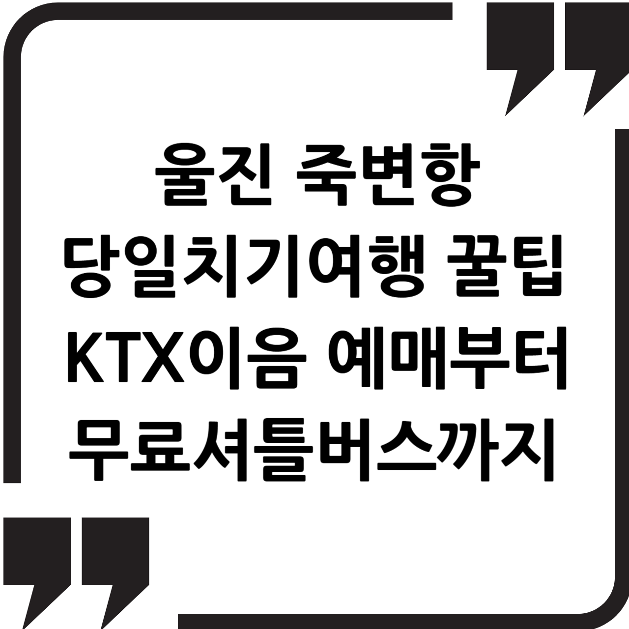 울진은 오래도록 대중교통으로 접근하기 어려운 지역으로 여겨졌습니다. 그러나 130년 만에 개통된 동해선 열차를 통해 이제는 보다 쉽고 편리하게 여행할 수 있게 되었습니다. 서울 청량리역에서 시작해 KTX 이음을 타고 동해역까지 이동한 후, 동해선 누리호 열차로 환승하면 울진의 아름다운 죽변역에 도착할 수 있습니다. 지금 이 글에서는 죽변역 당일치기 여행을 계획하는 분들을 위해 교통편, 관광지, 트레킹 코스, 먹거리 등 유익한 정보를 소개합니다. 아래 바로가기에서 KTX이음을 예약하고 즐거운 여행 준비해보세요.