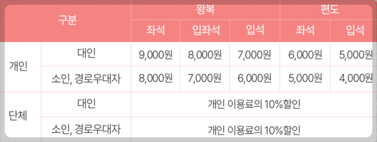 ※ 단체 할인은 20인 이상부터 적용되며, 별도 문의가 필요합니다.
